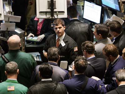 1月3日,人們在美國紐約證券交易所進行交易。當(dāng)天是紐約股市2007年開市第一天。紐約股市三大股指2006年全年均有不同程度的上漲,其中,道瓊斯指數(shù)全年漲幅超過16%。繼去年10月19日突破12000點大關(guān)之后,道瓊斯指數(shù)又在12月28日創(chuàng)下了12529.88點的盤中歷史新高。