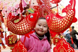 2月11日,安徽淮北的年貨市場紅紅火火,節(jié)目飾品琳瑯滿目,吸引了孩子們的目光。