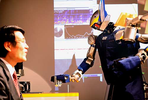 2月28日,日本東京大學(xué)研制的“HRP-2”機(jī)器人在該大學(xué)內(nèi)演示向人提供茶水服務(wù)。這種機(jī)器人是專門(mén)用來(lái)做日常家庭服務(wù)的。