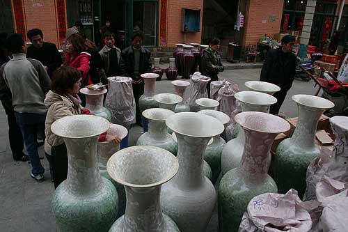 3月11日,中國(guó)瓷都景德鎮(zhèn)國(guó)際商貿(mào)廣場(chǎng)一片繁忙景象。據(jù)介紹,景德鎮(zhèn)市2006年完成陶瓷產(chǎn)值32億元,比上年增長(zhǎng)25.6%。2007年,景德鎮(zhèn)市欲充分利用瓷都品牌的良好平臺(tái),積極承接國(guó)內(nèi)陶瓷產(chǎn)業(yè)轉(zhuǎn)移,爭(zhēng)取引進(jìn)一批產(chǎn)值超10億元的陶瓷企業(yè),力爭(zhēng)全市陶瓷生產(chǎn)總值過(guò)100億元。 |