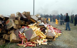 當(dāng)日,安徽省巢湖市無(wú)為縣工商、質(zhì)檢、藥監(jiān)等部門聯(lián)手在該縣蜀山鎮(zhèn)舉辦假冒偽劣商品集中銷毀行動(dòng)。執(zhí)法人員還向現(xiàn)場(chǎng)群眾介紹識(shí)別假冒偽劣商品的方法。