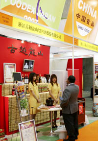 13日,一名觀眾在位于日本千葉縣的幕張國際會展中心內參觀中國食品企業(yè)展臺。為期3天的“中國食品貿易洽談會”當天在這里正式拉開帷幕,來自中國20多個省市的約60家食品企業(yè)參加了這次洽談會。