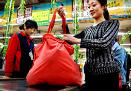 近日,銀川市環(huán)保部門與部分超市聯(lián)手發(fā)起了“清除‘白色垃圾’環(huán)保購物進超市”有獎購物活動。顧客購物時若不使用超市提供的塑料袋將少收取0.1元。推廣這一象征意義的“獎勵”措施,旨在喚起市民遏制“白色垃圾”。