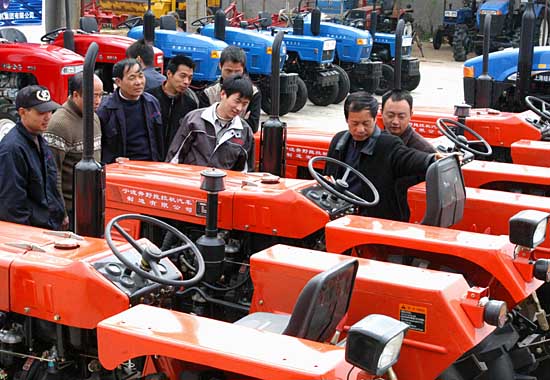 4月4日,來自江西新建等地的幾位農機手在江西農機大市場選購拖拉機。春耕時節(jié),隨著國家各項惠農購機補貼政策的落實,江西農民紛紛購置農機產品,涌現出了一大批農機大戶。