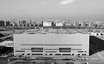 奧運(yùn)會(huì)的主會(huì)場(chǎng)——國(guó)家體育場(chǎng)(鳥巢),由24榀門式桁架圍繞著體育場(chǎng)內(nèi)部碗狀看臺(tái)區(qū)旋轉(zhuǎn)而成,結(jié)構(gòu)科學(xué)簡(jiǎn)潔,設(shè)計(jì)新穎獨(dú)特,是當(dāng)今國(guó)際上極富特色的巨型建筑,其鋼結(jié)構(gòu)屋蓋呈雙曲面馬鞍型,東西長(zhǎng)298米、南北長(zhǎng)333米,檐高達(dá)68.5米,總建筑面積約25.8萬(wàn)平方米!傍B巢”設(shè)計(jì)方案被專家們認(rèn)為“在世界建筑設(shè)計(jì)史上具有開創(chuàng)性的意義”,也是世界上獨(dú)一無(wú)二的建筑,運(yùn)用新科技、新技術(shù)、新工藝解決施工難題,在國(guó)家體育場(chǎng)工程建設(shè)中隨處可見。國(guó)家體育場(chǎng)鋼結(jié)構(gòu)肩部設(shè)計(jì)為彎扭構(gòu)件,這種設(shè)計(jì)在世界建筑史上沒有先例。敢于啃硬骨頭的北京城建人再次揚(yáng)起了科技攻關(guān)的風(fēng)帆,技術(shù)人員針對(duì)這一問題展開科技創(chuàng)新和技術(shù)攻關(guān),最終,在設(shè)計(jì)單位和寶鋼、首鋼、鞍鋼、武鋼及舞鋼等國(guó)內(nèi)7家鋼鐵廠的通力合作下,經(jīng)過近百次的試驗(yàn)、測(cè)算、測(cè)試,成功地軋出了符合施工要求、完全由我國(guó)自主研發(fā)的Q460高強(qiáng)度鋼材。這一新成果的開發(fā)應(yīng)用,不僅滿足了工程建設(shè)的需要,為“鳥巢”建設(shè)贏得了時(shí)間,也填補(bǔ)了我國(guó)該項(xiàng)技術(shù)領(lǐng)域的空白!傍B巢”鋼材焊接的焊縫總長(zhǎng)達(dá)30多萬(wàn)米,其中現(xiàn)場(chǎng)焊接焊縫長(zhǎng)達(dá)6萬(wàn)多米。按工期要求,近一半現(xiàn)場(chǎng)鋼材焊接要在冬季進(jìn)行。北京冬季的室外氣溫常在零攝氏度以下,而焊接一般要求在零攝氏度以上的“正溫”條件下進(jìn)行。面對(duì)這一難題,技術(shù)人員迅速展開“負(fù)溫焊接技術(shù)研究”,并研制出零攝氏度以下進(jìn)行焊接的技術(shù)參數(shù),解決冬季負(fù)溫焊接的難題。這一問題的解決,有力地保證了工程焊接質(zhì)量,為建設(shè)精品工程打下堅(jiān)實(shí)的基礎(chǔ)。