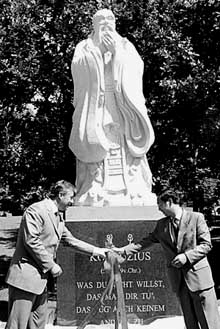 古人繪孔子像 | 2007年3月25日,新加坡南洋理工大學(xué)孔子學(xué)院三樓大禮堂座無虛席,來自中國北京師范大學(xué)的于丹教授以行云流水般的風格,與400多名觀眾一起分享了她在國內(nèi)引起巨大轟動的《論語》心得。以孔子為代表的儒家安身立命之道與倫理理念跨越千山萬水、打破幾千年時間阻隔,再次征服了今天的人們。聽眾紛紛表示,講座是一趟讓人享受的“文化之旅”。