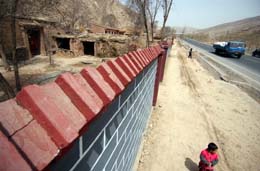 甘肅永靖縣是國家扶貧重點縣,全縣貧困面10%,個別鄉(xiāng)鎮(zhèn)的貧困面更是達到70%以上。記者近日在永靖縣采訪時發(fā)現(xiàn),這個縣部分公路兩邊,砌了九處、總長度兩公里多的高墻,用來擋住農(nóng)民破舊的房屋和院落,村莊看上去鮮亮整潔。而當(dāng)?shù)匾恍┐迕裣蛴浾叻从常谶@些墻體的后面,還有部分農(nóng)戶家里缺糧斷水,生活極其貧困。