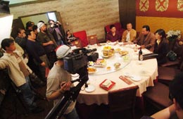 由河北省石家莊市西兆通鎮(zhèn)的村民郝俊臣與五個農民朋友籌資50萬元,自拍、自導、自演的高清晰電影《山杏》近日在石家莊市緊張拍攝。該影片描寫的是河北貧困山區(qū)的女孩山杏考上大學,在村民的幫助下交上學費,畢業(yè)后她婉言謝絕男朋友的挽留,毅然回到家鄉(xiāng),用學到的農業(yè)科學知識幫助鄉(xiāng)親們致富的故事。影片中主要演員有六人是土生土長的農民。據(jù)了解,這部電影是廣電總局立項批準的中國農民自己拍攝的第一部高清晰電影。圖為電影《山杏》的一個拍攝場景。 |