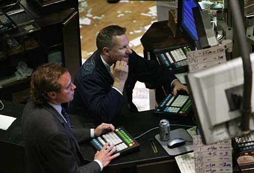 24日,兩名交易員在美國紐約證券交易所股票交易大廳工作。當日紐約股市收盤時,道瓊斯指數(shù)較前一個交易日上漲34.54點,收于12953.94點,漲幅為0.27%。道瓊斯指數(shù)盤中曾創(chuàng)下12989.86點的歷史新高,步步迫近13000點大關。