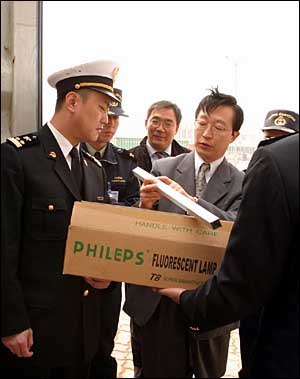 “作為跨國公司,比較全球16個設(shè)廠國家,我們認為中國海關(guān)在知識產(chǎn)權(quán)保護方面做的最好!”2007年4月20日,專程飛抵大連的飛利浦(中國)投資有限公司知識產(chǎn)權(quán)及標準部高級總監(jiān)鐘清明高度評價了中國海關(guān)的知識產(chǎn)權(quán)保護工作。原來,2006年10月12日,經(jīng)大連海關(guān)全面調(diào)查,認定沈陽新星公司出口的熒光燈管上使用的商標,因與權(quán)利人注冊的“PHILIPS”商標近似,已構(gòu)成侵權(quán)。該關(guān)根據(jù)有關(guān)條例對其進行了處罰,由此保護了飛利浦(中國)的權(quán)益。 |