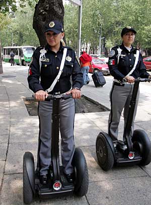 8日,在墨西哥首都墨西哥城的改革大道上,兩名女交警駕駛電動(dòng)代步車(chē)巡邏。當(dāng)天,墨西哥城聯(lián)邦區(qū)公共安全部向在改革大道一帶值勤的女交警配備20輛新式電動(dòng)代步車(chē)。這種新穎的代步工具便捷輕快,便于及時(shí)疏導(dǎo)交通和糾正違章,同時(shí)能夠減輕交通警察的勞動(dòng)強(qiáng)度。
