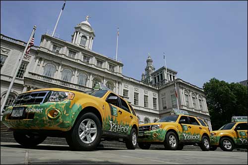 22日,由一家公司捐贈的3輛福特牌混合動力出租車停在美國紐約市政廳前。紐約市市長布隆伯格宣布,紐約所有出租車將在2012年前全部改用混合動力。出租車和轎車委員會也將在今后4年的時間里對出租車執(zhí)行尾氣排放和車輛行駛里程的新標(biāo)準(zhǔn)。