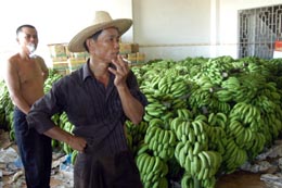 5月24日,海南瓊海市塔洋鎮(zhèn)農(nóng)民面對低迷的香蕉價格愁容滿面。近日,關(guān)于“香蕉含類似SARS病毒”的信息在國內(nèi)部分手機(jī)用戶間流傳。農(nóng)業(yè)部市場司副司長張興旺認(rèn)為,“香蕉含類似SARS病毒”的說法是沒有任何科學(xué)依據(jù)的,純屬謠言。海南香蕉市場因這條短信出現(xiàn)波動,雖銷量沒什么影響,但是在價格上每500克下降了0.1至0.2元。 |