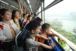 5月29日,20名受助的山區(qū)貧困兒童乘坐輕軌列車觀賞沿途風景。當日,重慶市慈善總會開展“情系山區(qū)兒童‘六一’手拉手”活動,將20名受助的銅梁縣山區(qū)貧困兒童接到城市里,組織他們參觀動物園、乘坐輕軌列車,還贈送給孩子們學習用品等節(jié)日禮物。