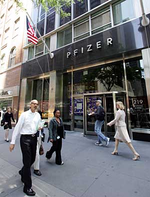 6日,行人從位于美國(guó)紐約的輝瑞制藥公司全球總部大樓前走過(guò)。4日,尼日利亞政府向設(shè)在首都阿布賈的聯(lián)邦高等法院提出起訴,控告輝瑞制藥公司未經(jīng)尼政府相關(guān)機(jī)構(gòu)許可就利用尼北部卡諾州患有腦膜炎的兒童試驗(yàn)新型抗生素“Trovan”,不少兒童在試驗(yàn)后死亡或出現(xiàn)聾啞、麻痹、腦損傷、失明、口齒不清等癥狀。尼政府就此提出近70億美元的索賠要求。輝瑞制藥公司否認(rèn)尼日利亞方面的指責(zé),認(rèn)為腦膜炎才是涉案兒童死亡或殘疾的原因。 | |