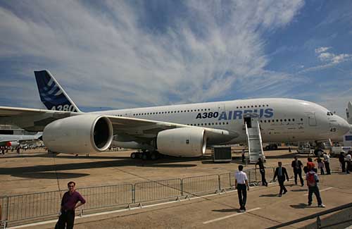 19日,一架空中客車A380在法國(guó)巴黎的國(guó)際航空航天展上展出?湛虯380是目前世界上載客量最大的客機(jī),目前的訂單已達(dá)173架。