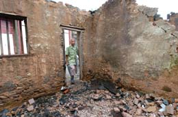 7月29日,湖北恩施市高橋壩村的高顯聲老人在查看自家垮塌的房屋。