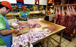 8月5日,廈門一家超市銷售人員在分裝豬肉。廈門市從調(diào)集豬肉貨源、扶持養(yǎng)豬業(yè)發(fā)展等多方面平抑豬肉價(jià)格,目前市場(chǎng)豬肉供應(yīng)貨源充足,價(jià)格逐漸回落。