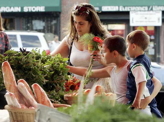14日,在美國(guó)馬薩諸塞州,居民們選購(gòu)由孩子們種植的蔬菜。當(dāng)?shù)孛磕甓紩?huì)有60名14至17歲的青少年參加“食品工程”組織的活動(dòng),在農(nóng)場(chǎng)上種植農(nóng)作物,收獲后或與社區(qū)居民們分享或贈(zèng)與慈善組織。
