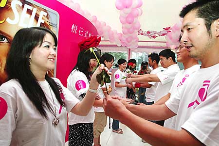 | 近年來(lái),“相親”這個(gè)古老主題開(kāi)始重回人們視線,隨之而來(lái)的卻是諸如“剩男剩女”“大齡青年”等一些無(wú)奈字眼。緊湊的生活節(jié)奏,日益加劇的社會(huì)壓力使相親不可避免地成為很多城市單身白領(lǐng)的生活場(chǎng)景。8月29日至9月4日,一個(gè)倡導(dǎo)“悅己式快樂(lè)相親”的活動(dòng)在上海舉行。所謂“悅己式”,即鼓勵(lì)都市男女勇敢自主地選擇、積極樂(lè)觀地對(duì)待婚戀,這有別于傳統(tǒng)意義上充滿壓力和緊張感的相親。一起做美食,或一起來(lái)段熱舞,交友變得簡(jiǎn)單、輕松,不再給雙方壓力。 | |
