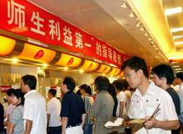 這是9月13日在上海交通大學(xué)食堂內(nèi)拍攝的購餐場(chǎng)面。近日,上海多所高校已停止或限制發(fā)售一次性餐券或飯菜票,而統(tǒng)一使用校園卡購餐。據(jù)了解,新學(xué)期為了穩(wěn)定食堂的飯菜價(jià)格,各高校都拿出了大量補(bǔ)貼,但學(xué)校周邊的居民或社會(huì)人員經(jīng)常在學(xué)校餐廳“蹭飯”,奪走了學(xué)生應(yīng)該享受到的一部分福利,因此各高校紛紛采取拒絕和限制措施。