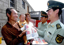 當(dāng)日,駐守在福建沿海的長(zhǎng)樂(lè)公安邊防官兵來(lái)到交通不便的偏遠(yuǎn)海島——長(zhǎng)嶼島,為這里的漁民送報(bào)讀報(bào),把十七大召開(kāi)的喜訊傳送給漁民。