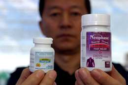 10月16日,蘭州天業(yè)植物藥研究所的工作人員在展示治療頸椎病和腰椎間盤(pán)突出癥的特效中藥。當(dāng)日,正在深圳舉行的第九屆高交會(huì)上,由甘肅蘭州天業(yè)植物藥研究所利用中藥萃取新工藝研發(fā)出的系列藥品受到業(yè)界關(guān)注。該藥經(jīng)美國(guó)食品和藥品管理局(FDA)檢驗(yàn)合格并獲準(zhǔn)自由銷(xiāo)售,是我國(guó)中藥打進(jìn)國(guó)際主流市場(chǎng)過(guò)程中為數(shù)不多的優(yōu)秀范例。 |