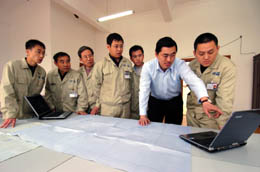 老工業(yè)基地哈爾濱市加快推進(jìn)新型工業(yè)化進(jìn)程,正在改變過(guò)去“雁南飛”、“雁外飛”的人才外流現(xiàn)象,吸引了越來(lái)越多的人才回鄉(xiāng)創(chuàng)業(yè)。歸國(guó)華僑、青年企業(yè)家尚宇參與創(chuàng)辦的哈爾濱四海集團(tuán)是一家創(chuàng)新型高科技僑屬企業(yè),擁有自主知識(shí)產(chǎn)權(quán)成果30余項(xiàng),平均每季度都會(huì)創(chuàng)造出一種填補(bǔ)國(guó)內(nèi)空白的新產(chǎn)品。目前,該企業(yè)生產(chǎn)的智能機(jī)器人、數(shù)控機(jī)床和自動(dòng)化生產(chǎn)線,全部擁有自主知識(shí)產(chǎn)權(quán),替代進(jìn)口產(chǎn)品并遠(yuǎn)銷新加坡、馬來(lái)西亞、俄羅斯等十幾個(gè)國(guó)家。圖為年僅33歲的尚宇(右二)帶領(lǐng)著科研人員在進(jìn)行新產(chǎn)品研發(fā)。 |