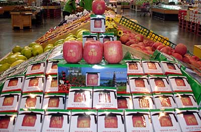 11月1日,在韓國首都首爾的一家商場,貨架上擺放著長有“合格”字樣的蘋果,象征著“高考合格錄取”。韓國的大學入學考試即將舉行,很多商家趁機推出各種相關產品,迎合考生家庭的心理。