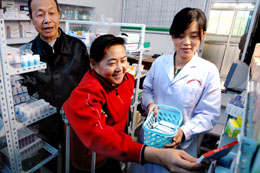 11月5日,城市低保戶王西寧(中)在銀川興慶區(qū)錦繡苑社區(qū)醫(yī)療救助點(diǎn)免費(fèi)取藥。 2005年銀川市開(kāi)展中英合作社區(qū)衛(wèi)生服務(wù)與貧困救助項(xiàng)目以來(lái),已有超過(guò)4萬(wàn)城市低保戶享受到醫(yī)療救助服務(wù)。據(jù)了解,該項(xiàng)目經(jīng)費(fèi)由銀川市政府、英國(guó)政府UHPP項(xiàng)目援助以及國(guó)家民政部的大病救助資金共同承擔(dān)。 |