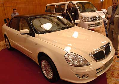 5日,埃及參觀者在開羅觀看新上市的駿捷轎車。中國沈陽華晨金杯汽車有限公司當(dāng)日在開羅舉行新聞發(fā)布會,宣布該公司生產(chǎn)的駿捷轎車正式在埃及上市。近年來,多款中國汽車進入埃及市場,受到埃及消費者青睞。