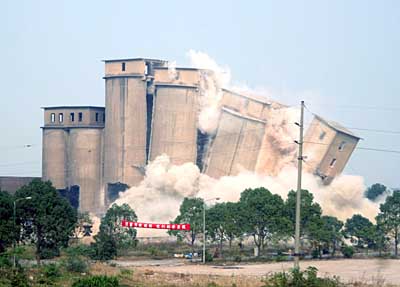 11月8日,江蘇溧陽(yáng)市南渡鎮(zhèn)原強(qiáng)埠水泥廠內(nèi)的機(jī)立窯水泥生產(chǎn)線群被爆破拆除。