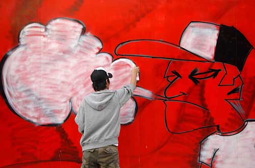 中國(guó)首屆涂鴉魅力藝術(shù)展近日在北京中國(guó)國(guó)際展覽中心亮相。展覽基本覆蓋了國(guó)內(nèi)涂鴉創(chuàng)作優(yōu)秀團(tuán)隊(duì)及個(gè)人的作品,很多作品帶有濃烈的地域特征和文化色彩。不少團(tuán)隊(duì)還現(xiàn)場(chǎng)進(jìn)行了涂鴉創(chuàng)作。