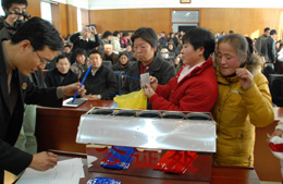 11月14日,哈爾濱市2007年度廉租住房抽簽選號儀式舉行,享受廉租住房待遇的市民在公證人員的監(jiān)督下依次抽簽選房號。當天,哈爾濱市百余名享受廉租住房待遇的市民通過抽簽選號喜獲廉租新房。