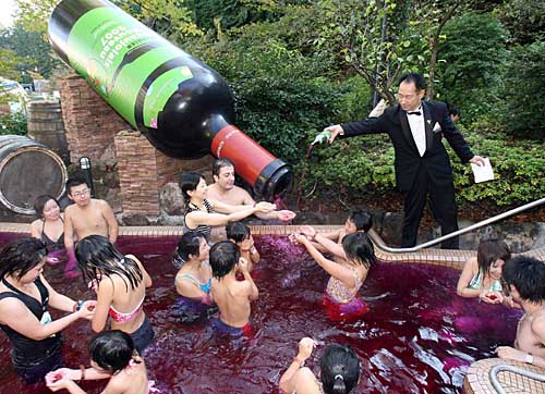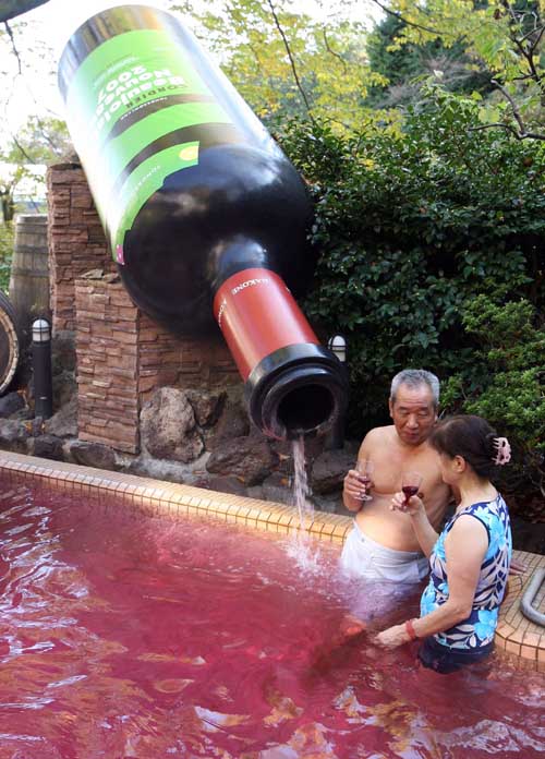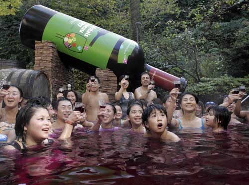 人們?cè)谌毡鞠涓硎芷咸丫圃,慶!安┤羧R”鮮葡萄酒開瓶日。 11月的第三個(gè)星期四,是一年一度的“博若萊”鮮葡萄酒開瓶日!安┤羧R”鮮葡萄酒是葡萄酒愛好者能喝到的法國(guó)當(dāng)年第一款新酒,品嘗該酒可以對(duì)法國(guó)當(dāng)年葡萄酒的品質(zhì)和年景有基本判斷,因此,具有法國(guó)葡萄酒“年景評(píng)估尺”的美譽(yù)。“博若萊”鮮葡萄酒深受日本人的歡迎,今年約進(jìn)口840萬(wàn)瓶。