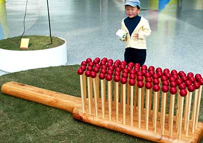 11月21日,一個小朋友在展覽上觀看木制的大毛刷。 近日,“創(chuàng)意世博——氣候酷派,設(shè)計先行展”在上?萍拣^舉行。展覽展出了英國設(shè)計師們創(chuàng)意十足的環(huán)保產(chǎn)品,提供了一個全新的視角來看待氣候變化問題,倡議人們在生活中減少浪費,再利用、循環(huán)利用能源,自己動手制作環(huán)保且個性化的物品。 | |