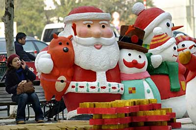 11月23日,市民在南京新街口街頭擺放的圣誕裝飾旁休息。距離圣誕節(jié)還有一個(gè)月,南京新街口商業(yè)區(qū)的商店已開始在店外街頭布置圣誕裝飾物,以營造氣氛吸引顧客。