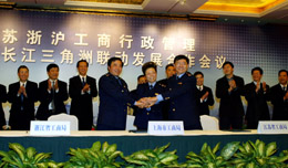 12月2日,江蘇省、上海市、浙江省工商行政管理局局長簽署《蘇浙滬工商行政管理聯席會議備忘錄》。當天,江蘇、浙江、上海三省市工商部門在上海宣布建立聯席會議制度,并公布了即將在長三角地區(qū)統一實施的兩項“共同政策”。此舉標志著三地工商部門率先打破了行政區(qū)劃的限制,推動區(qū)域大市場的形成。