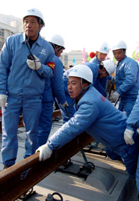 12月16日上午,京津城際鐵路跨天津市新開路立交橋橋頭鋪下最后一根鋼軌,順利實(shí)現(xiàn)全線貫通。京津城際鐵路2008年初進(jìn)入綜合調(diào)試階段,北京奧運(yùn)會(huì)前將正式開通并投入運(yùn)營,屆時(shí)北京、天津間火車全程直達(dá)運(yùn)行僅需30分鐘。