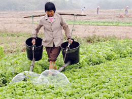 12月16日,廣西欽州市尖山鎮(zhèn)一農(nóng)婦擔(dān)水澆灌受旱菜地。 據(jù)廣西壯族自治區(qū)氣象局統(tǒng)計(jì),2007年11月至12月,廣西全區(qū)平均降水量?jī)H為0.5毫米,比常年同期偏少9.9成,各大江河水位比往年同期降低50%,83個(gè)縣市發(fā)生不同程度的干旱,10.5萬(wàn)公頃農(nóng)作物受旱。目前,廣西各地農(nóng)民正全力抗旱趕搶冬種,爭(zhēng)取明春有個(gè)好收成。 |
