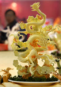 12月20日,參觀者在觀看宿遷餐飲展位上的食品雕刻。當(dāng)日,江蘇省第二屆餐飲業(yè)成果展暨第五屆烹飪技術(shù)比賽在南京城市規(guī)劃建設(shè)展覽館開幕,全省各地的餐飲展位以及數(shù)百個(gè)參賽團(tuán)體和單項(xiàng)選手制作的創(chuàng)新菜肴,讓參觀者享受到一場(chǎng)豐盛的美食“盛宴”。