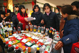 1月7日,商家在“農(nóng)村春節(jié)食品專場(chǎng)”訂貨會(huì)上看樣訂貨。當(dāng)日,北京“農(nóng)村春節(jié)食品專場(chǎng)”訂貨會(huì)在懷柔區(qū)開場(chǎng),25個(gè)廠家提供了包括食用油、飲料、白酒、調(diào)味品、包裝食品等多種節(jié)日食品,以保證春節(jié)農(nóng)村食品市場(chǎng)的供應(yīng),讓農(nóng)民購(gòu)買到安全放心的節(jié)日食品。