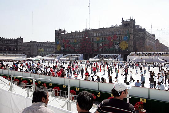 8日,墨西哥首都墨西哥城的人工溜冰場人頭攢動。墨西哥城全年氣候溫和,通常不結(jié)冰。墨西哥城市政府于2007年年末在該市憲法廣場建起一個3000平方米的人工溜冰場供市民消遣。自去年12月1日正式啟用以來,這個溜冰場接待市民近30萬人次。