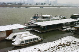 冰雪覆蓋下的長沙旅游客運碼頭(1月15日攝)。