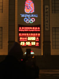 1月20日,一名攝像師在拍攝中國國家博物館前的倒計(jì)時牌。當(dāng)日,北京迎來2008年奧運(yùn)會倒計(jì)時200天。