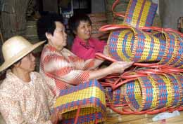 1月21日,瓊海市民選購(gòu)菜籃子。隨著塑料袋在市場(chǎng)上被限制使用,傳統(tǒng)的菜籃子銷售趨旺。在海南省瓊海市嘉積中心市場(chǎng)的兩家經(jīng)銷竹器的商店里,每天前來(lái)購(gòu)買小菜籃的市民漸漸增多。