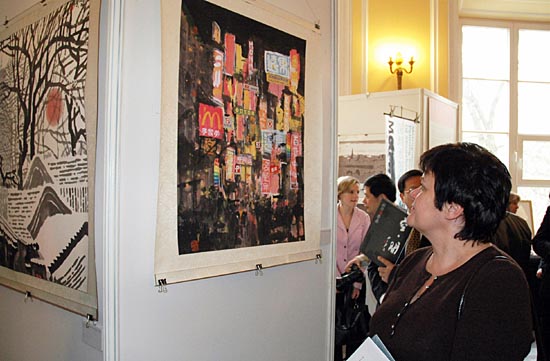 12日,中國深圳都市水墨畫展在華沙市政廳展廳開幕。深圳市文化局、深圳畫院挑選了25幅作品參展,向波蘭觀眾介紹“都市水墨”在當今水墨畫壇的發(fā)展趨勢,同時展現了中國傳統水墨畫藝術走向當代的歷程。