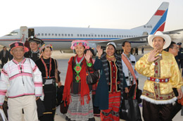 圖為來自云南的全國政協(xié)委員乘飛機(jī)抵達(dá)北京西郊機(jī)場(chǎng)。