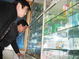 2月27日,藥品檢驗人員在對鄉(xiāng)村衛(wèi)生院的藥品進(jìn)行檢查。當(dāng)日,安徽省巢湖市食品藥品檢驗所的工作人員來到巢湖居巢區(qū)槐林鎮(zhèn),對衛(wèi)生院和藥房的藥品進(jìn)行抽樣檢測,保障農(nóng)村群眾用藥安全。