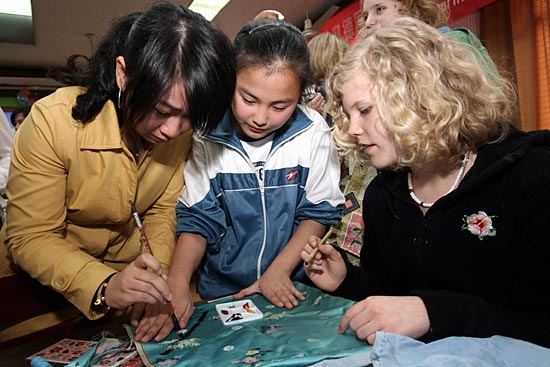 25日,實驗中學的學生與來自德國的朋友一起設計制作個性環(huán)保布袋。 當日,德國赫爾茲戈林根·宣布赫高級一級中學的學生到浙江省杭州市浙江傳媒學院實驗中學訪問,中德學生一起動手制作簡易機器人、“可樂瓶火箭”、個性環(huán)保袋等,在交流中結下友誼。